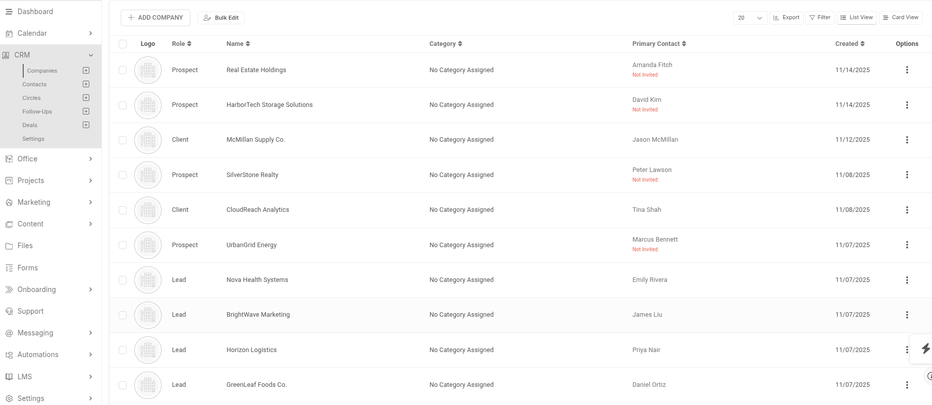Centralize companies, contacts, and relationships in a structured system built to scale with your business.