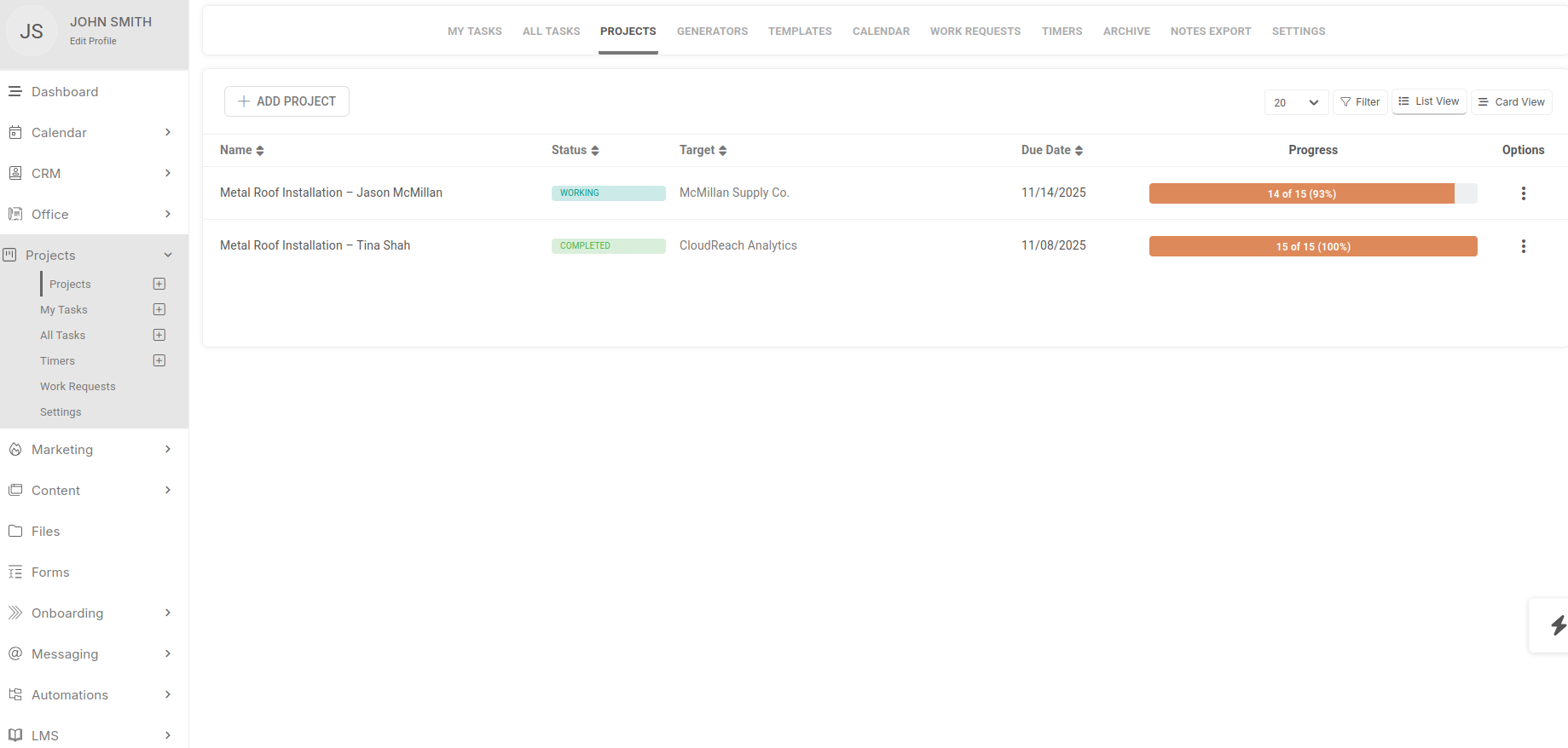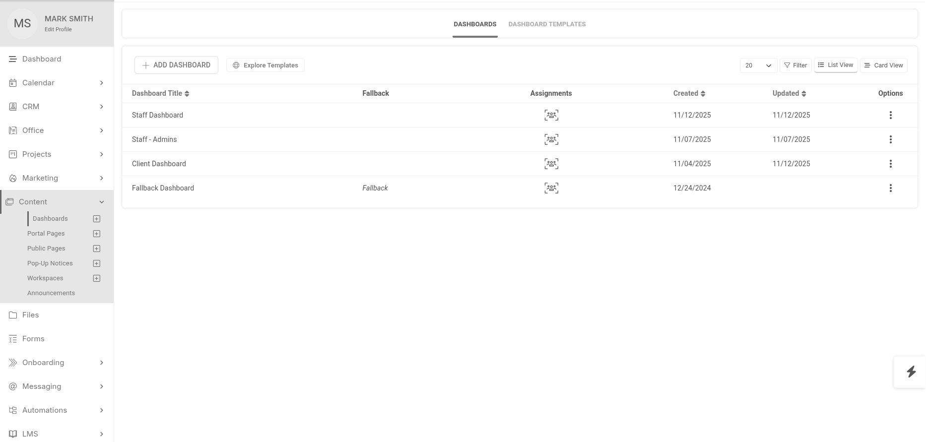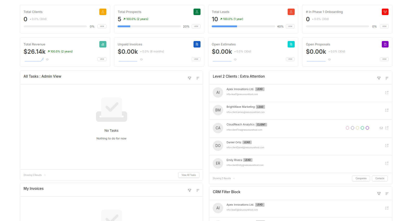 Provide role-based dashboards that give clients and staff instant access to what matters most to them